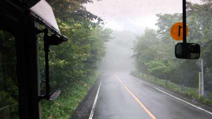 霧降高原に入りました。 名前通りの霧が充満しています。