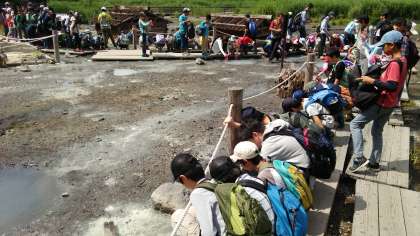 湯元温泉で10円玉をつけます。さて、どのような化学変化が見られるでしょうか?