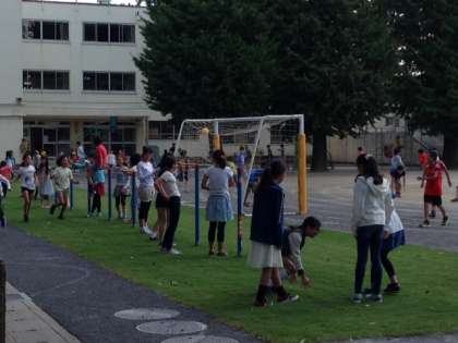 先週末に運動会が無事に終わり、また普段の学校生活に戻りました。休み時間のクローバー園の使用も再開し、たくさんの子どもたちが芝生の上で楽しく遊びました。また、校庭の鉄棒下にも芝生が敷かれ、そこでも子どもたちは鉄棒をしたりしゃがみ込んだり、芝生の感触を楽しみにながら過ごしていました。芝生は子どもたちに大人気です。