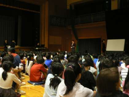 今日は、ボランティアのお母さんたちによる「大型布絵本の読み聞かせ会」がありました。毎年恒例の行事で、この日のために1学期から準備を進めてきてくださいました。子どもたちもとても楽しみにしていました。暗い体育館が照明でライトアップされ、読み聞かせが始まり、まるで劇を見ているようなすてきな読み聞かせをしてくださいました。読み聞かせが終わり、とても幸せな気持ちになりました。ボランティアのお母さん方、すてきな読み聞かせをありがとうございました。