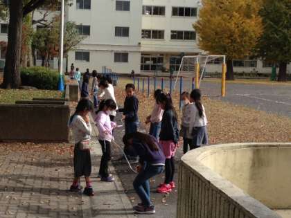 4年生の算数では「面積」の学習に取り組んでいます。今日の算数の時間、あるクラスは教室から外に出て、校庭で学習に取り組んでいました。校庭をメジャーで実測し、校庭の面積を求める学習に取り組んでいました。皆で協力して校庭の縦と横の長さを測りとり、それを元に計算で面積を求めるようです。楽しそうに学習に取り組んでいました。さて、校庭の面積はどれくらいになったのでしょうか。