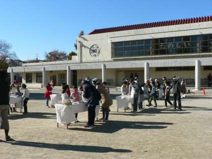 晴天に恵まれ、第31回祖師谷小もちつき大会が校庭で行われました。