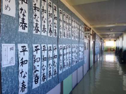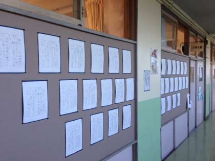 昨日で、三学期の学校公開期間が終わりました。たくさんの皆様のご来校、ありがとうございました。さて、16日から校内で書き初め展を行っています。三学期早々に全学年が書き初めに取り組み、一生懸命作品を仕上げました。1,2年は硬筆の作品、3年生以上は毛筆の作品です。子どもたちの力作をご覧いただけましたか。書き初め展は今週末で終わりとなります。よろしければどうぞご覧ください。