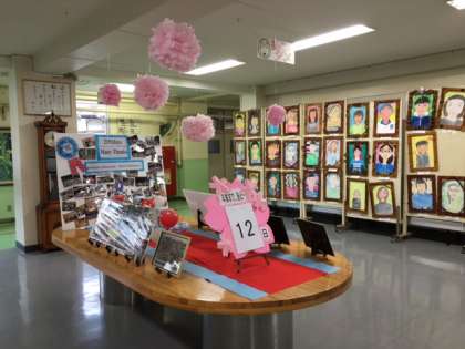 卒業式の練習が本格的に始まり、6年生の子どもたちは祖師谷小学校卒業の日までまで残り少なくなってきました。昇降口の装飾も6年生の思い出バージョンに変わりました。入学式の写真など懐かしい写真がたくさん並び、登下校時や休み時間などに子どもたちが嬉しそうに眺めています。昇降口には、先日の謝恩会で使用した装飾や自画像も並び、6年生ワールドができています。残りの日々も楽しく過ごしてほしいと思います。美化ボランティアの皆さん、ありがとうございました。