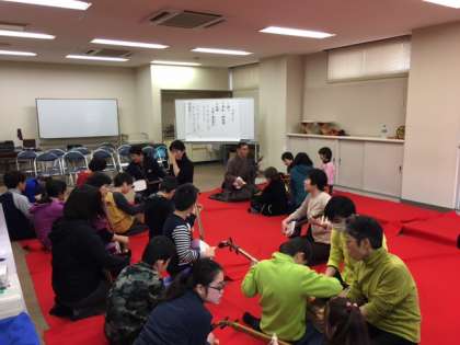 今日のぽぷら学級の授業では、和楽器の師匠をゲストティーチャーをお招きして和楽器体験の授業を行いました。子どもたちは三味線をお借りしてゲストティーチャーから手ほどきを受け、音を出す体験をしました。三味線とばちを持つ姿はどの子もなかなか格好良く、達人のようでした。また、太鼓も叩かせていただきました。貴重な体験をさせていただき、子どもたちも喜んでいました。ゲストティーチャーの皆さん、ありがとうございました。