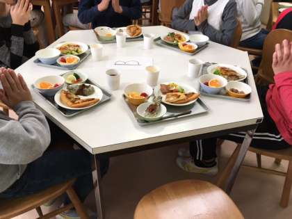 今週、先週と6年生はバイキング給食がありました。6年間に1回だけの特別な給食で、栄養士や調理の皆さんが心を込めて作ってくださいました。ランチルームには、テーブルの上に肉料理や魚料理、フルーツなどが彩りよく並び、子どもたちはワクワクしながら盛りつけていました。何度もおかわりする子もおり、子どもたちは大喜びでした。楽しい思い出がまた一つ増えました。