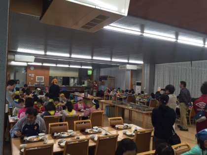 食事係が一生懸命準備をしました。ビレジの方が用意してくださった食事を、みんなでおいしくいただきました。(おかわりもたくさんしました!)