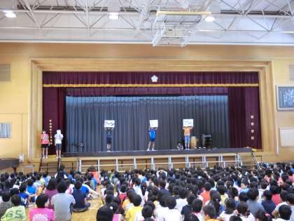 今日は、集会委員会による「ゲーム集会」がありました。今日のゲームは仲間はずれを探すゲームです。三択で、仲間はずれだと思う答えに拍手をします。1年生にも優しいクイズだったのでとても盛り上がりました。集会委員会のみなさんありがとうございました。
