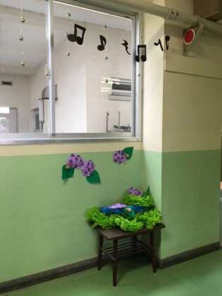 梅雨が間近とは思えない爽やかな天気が続く中、6月に入りました。子どもたちは元気いっぱいに過ごしています。また、一昨日から出かけている5年生の川場移動教室も順調に進んでおり、本日帰校します。さて、6月になり、昇降口の装飾も新しいディスプレイに変わりました。来週末に実施予定の「そしがや音楽会」をテーマにした飾り付けです。また、第二昇降口前にも素敵な紫陽花の装飾があります。装飾ボランティアの皆さん、ありがとうございます。皆さん、「そしがや音楽会」を楽しみにしていてください。