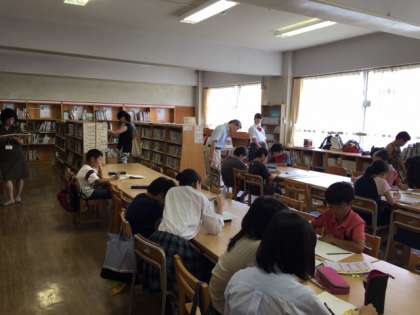 今日からスタディルームが再会です。学校運営委員会主催のスタディルームにたくさんの子どもたちが参加し、それぞれの課題に一生懸命取り組んでいます。わからないことなどは、ボランティアの高校生に教えていただいています。お兄さんやお姉さんからアドバイスをもらい、子どもたちもとてもうれしそうでした。皆、しっかりと勉強を頑張っていました。スタディルームは8月2日まで続きます。(参加申込みは締め切っています)