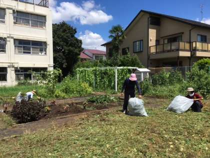 昨日19日の午前中、園芸ボランティアの皆さんと教員の有志で理科園の草刈りを行いました。ジャングルのようになっていた理科園の雑草を園芸ボランティアの皆さんにも協力していただき、きれいにしました。暑い中皆で頑張り、理科園はとてもきれいになりました。園芸ボランティアの皆さん、ありがとうございました。