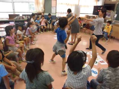一学期と比べると、よりあいさつが上手になっていて、楽しんで英語に親しんでいる様子が見られました。