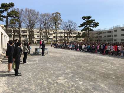 晴天に恵まれて、平成29年度の始業式が行われました。校長から、新しく来られた先生の紹介や担任や専科の先生の発表がありました。子どもたちはよく話を聞き、素直に喜ぶ様子が見られました。
