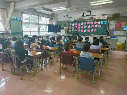 一年生は、自己紹介やトイレの使い方の確認などをしました。