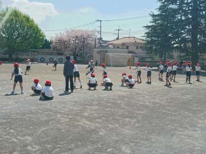 今日も天気に恵まれました。子どもたちは、体育の授業で思い切り体を動かしています。「がんばれ!」「いいぞ!」などの元気な声も響いています。