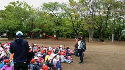 長い階段を登り、展望台でヤッホーをして広場に到着しました!今からたくさん遊びます!