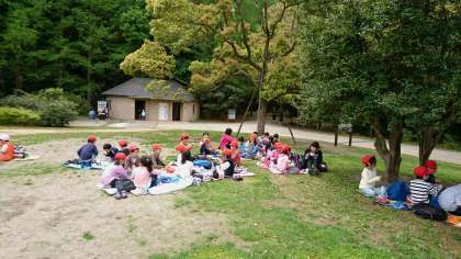 たくさん遊んで、お疲れ気味の子どもたちでしたが、お弁当タイムになって、パワーが復活!!みんなモリモリ食べています。