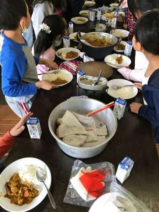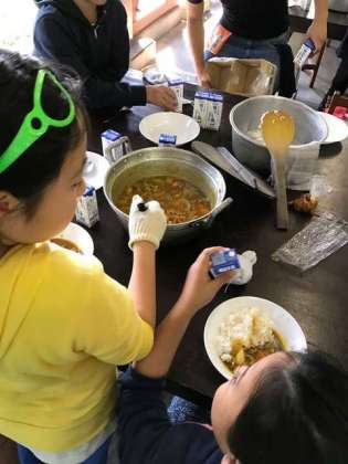 煙の中を格闘しながら、やっとカレーライスが完成しました!今から牛乳とともに、いただきます。