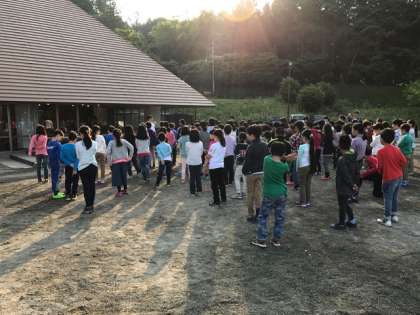 おはようございます。2日目の朝を迎えました。よいお天気の中で、朝会をしています。