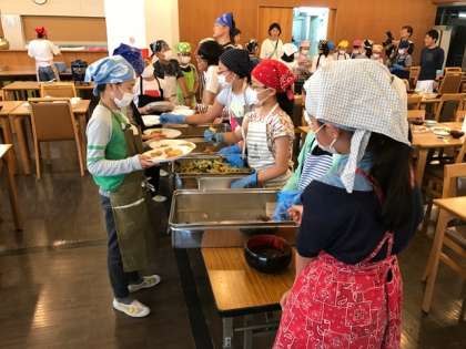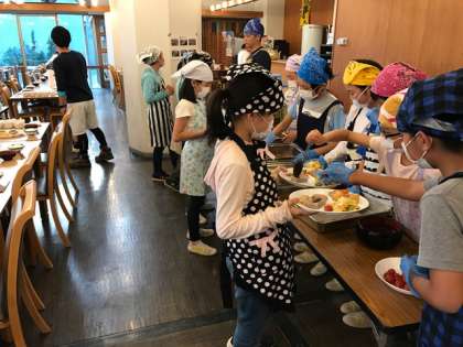 食事係が、夕食の準備をがんばっています!朝食の準備もして、今回が2回目なので、配膳も慣れてきました。