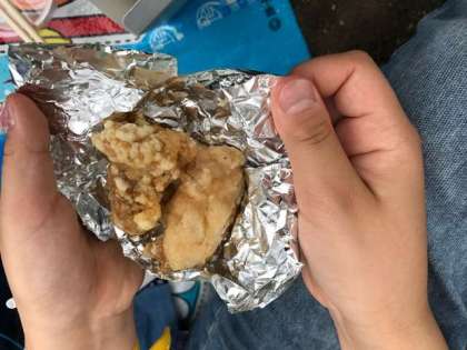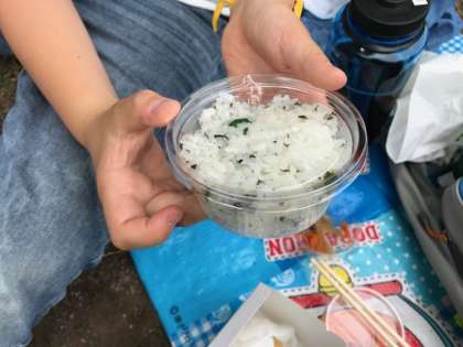 お昼ごはんは、このメニューです。行動班ごとにいただきます。