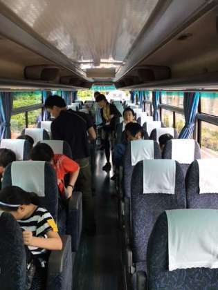 ぽぷら学級4.5.6年生は、今日から2泊3日の河口湖連合移動教室に出発です。時間通りバスで出発です。