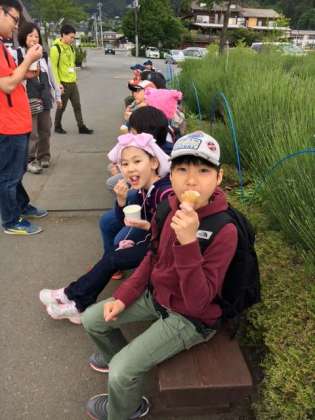 お風呂あがりに、湖畔を歩き、ソフトクリームを食べました。