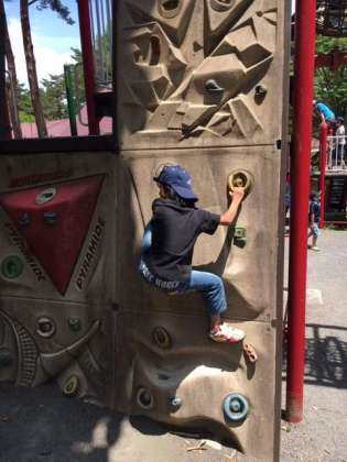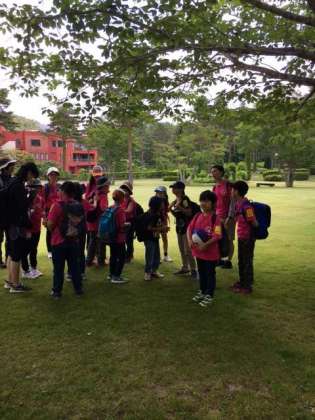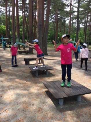 恩師林庭園に着きました。 フィールドアスレチックが大人気。