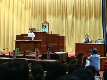 いよいよ参議院特別体験プログラムが始まりました。各委員会の委員や委員長、議員、大臣、議長などの役になり、今回は未成年者禁煙禁酒法改正案の議決のための話し合いをしました。 話し合い後、国会議員役の全員で採決を行いました。結果は賛成が1票多く可決しました。