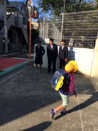 職場体験できている中学生があいさつ運動に参加してくれました。「おはようございます。」
