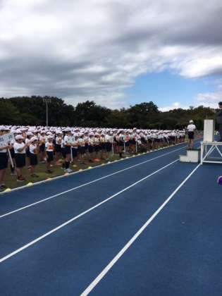 今日は、6年生の連合運動会です。総合運動場に区内20校が集い、100m走や高跳びなど様々な競技で競い合います。自己記録更新を目指します。