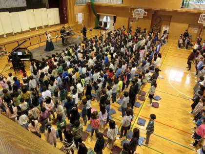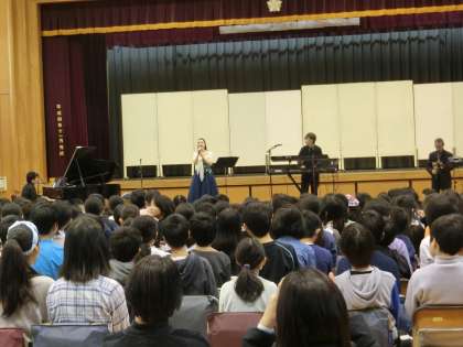 今日は祖師谷小学校の開校記念日です。今年は「電子楽器の世界」というテーマで4人の演奏者をお招きして、開校記念コンサートが行われました。子どもたちは、普段見慣れない楽器に興味を示して聞いていました。また「この星に生まれて」をみんなで歌い、盛り上がりました。4人の演奏者のみなさん、本当にありがとうございました。
