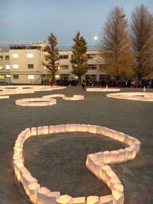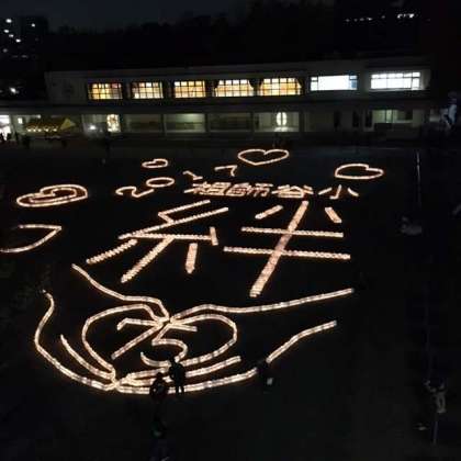 75周年記念イベントのラストを飾り、キャンドルナイトを開催しました。合唱団の歌で開会し、校庭に並べられた約2800のろうそくに火が灯りました。これからも深い絆で結ばれた地域、学校であり続けたいと思います。