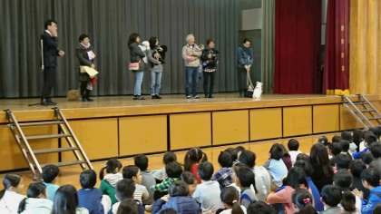 今日の全校朝会で、来年度のわんわんパトロール隊の皆さんをご紹介しました。子どもたちの登下校の安全を、ワンちゃんと一緒に見守っていただきます。1年間どうぞよろしくお願いいたします!