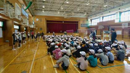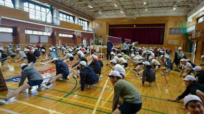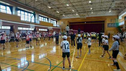 今日の午後から、送別球技大会が行われています。もうすぐ卒業する6年生のために、5年生が企画運営をしています。第一試合が始まりました。どのチームが優勝するでしょうか!