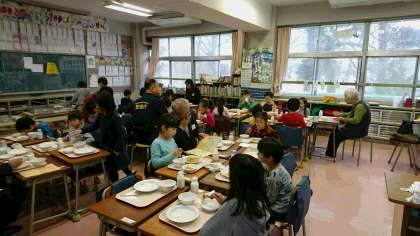 今週の月曜日に、祖師谷子ども健全育成の会の皆様にお声かけいただき、地域の方々と1年生とで給食を一緒に食べる「ふれあい給食」を行いました。普段から下校の安全見守りや、行事などでお世話になっている皆さんと、改めてお会いすることができて、とても楽しく有意義なひとときでした。