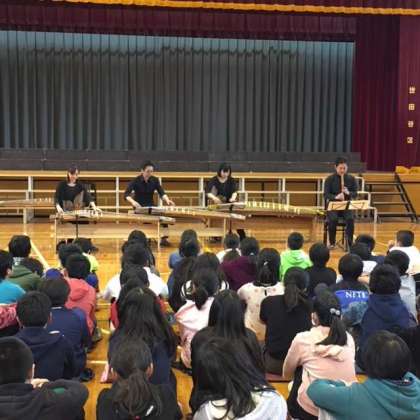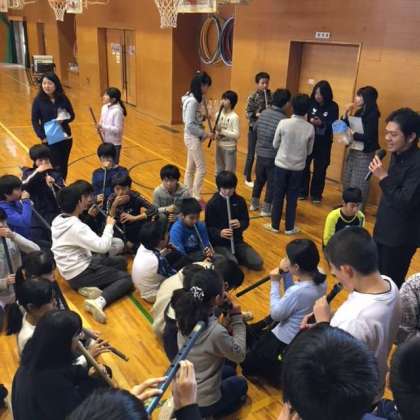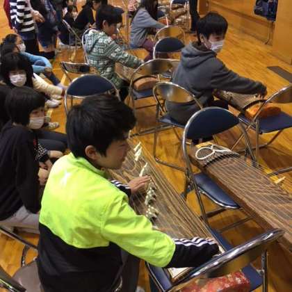 大雪の影響で延期になっていた鑑賞教室が、6年生を対象に行わなけれました。今回は、演奏を聴いた後、筝や尺八の演奏体験もさせていただきました。なかなか音が出ない尺八に苦戦していました。