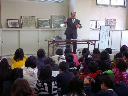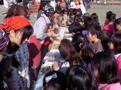 快晴の天候の下、全学年の子どもたちがもちつきを体験しました。遊び場開放委員、PTA、おやじの会、地域の方々と100名ほどがお世話をしてくださいました。もちつきの後は、つきたてのおもちをいただきました。おみやげに丸もちを3つ持ち帰りました。3年生から6年生は、もちつきの合間に昭和18年卒業(第1期卒業生)の西田さんから開校当時の子どもの遊びや生活の様子、地域のことなどたくさんの話を伺いました。「よく学び、よく遊ぶ」ことの大切さも学びました。