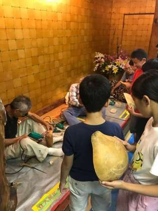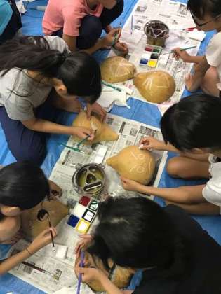 ふくべ細工制作スタート。職人さんの分かりやすい説明の後に、子どもたちは思い思いの作品を作り始めました。どんな作品に仕上がるのでしょうか?
