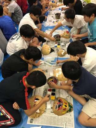 色とりどりの個性豊かな作品が続々とできてきています。ふくべの形に合わせたデザインを考える子どもたちの想像力に感心します。