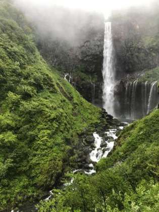 雨が降る中、風が強い中、奇跡的に見られた華厳の滝。大迫力の光景でした。