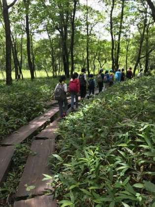 戦場ヶ原のハイキングのスタートです。雨はすっかりやみ、晴れ間が見え始めました。みんなの願いが叶いました。