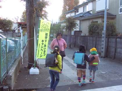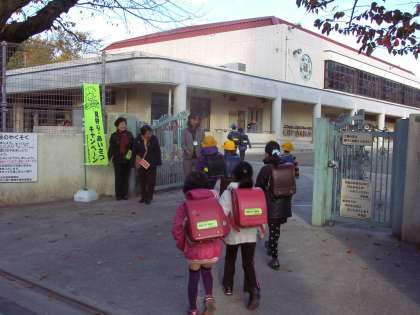 月初めの登校日はライトくんデーです。祖師谷子ども健全育成の会、PTA役員、地域や保護者の方々が児童の登校時に通学路に立って、見守ってくださいます。子どもたちの元気のよい「おはようございます」のあいさつに、立ってくださっている方々の顔も思わずほころびます。