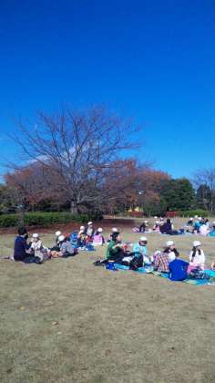 朝の大雨は嘘のように晴れ、快晴の下ふれあい広場でお弁当を食べました。遊具や落ち葉で思いっきり遊び、へとへとになって学校へ帰ってきました。