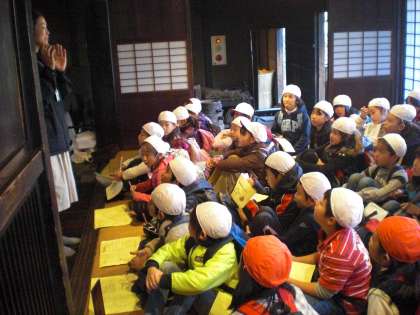 ○心が洗われるような静かな庭の広がる浄真寺。仁王堂・本堂にて法話を聞きました。「良い行動がたくさんあったかな」とちょっと心配な顔も。