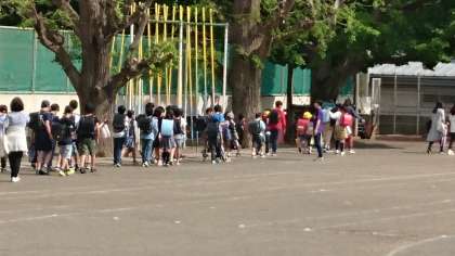 気温がぐんと上がり、暑い日になりました。保護者の皆様には、校外班集会や集団下校にご参加いただき、誠にありがとうございました。何かあっては困りますが、訓練を通して万が一にしっかり備えていきたいと思います。