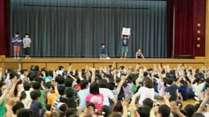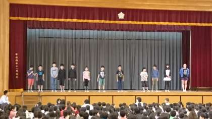 今朝は、集会委員会が企画をしたゲーム集会がありました。普段の生活の中で感じた疑問をクイズにして、全校のみんなに出題しました。例えば、イクラとすじこの違いは?という問題や、つばめの親は、雛に何回ぐらい餌をあげるかなど、なるほど!という問題がたくさんありました。出題するためには、調べて答えをもっていなければいけません。自分たちで考え、集会を成し遂げた集会委員会に拍手を送ります。