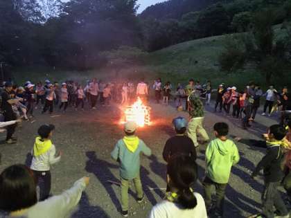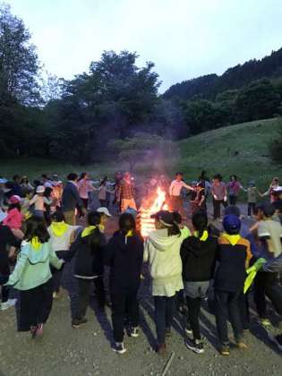 キャンプファイヤーは歌って踊って、大変盛り上がりました。