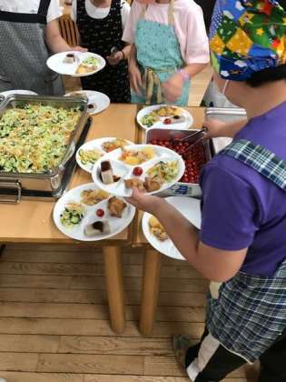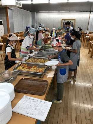 2日目の夕食準備です。食事係も2回目の配膳なので、てきぱきと準備ができています。