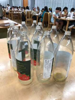 かわばのりんごジュースはおかわり分もすべてからっぽになりました。ごちそうさまでした。